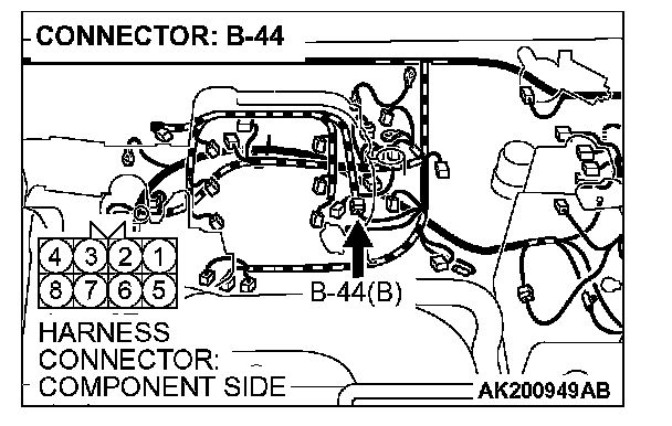 STEP 12. Check harness connector B-44 at injector intermediate connector for damage.