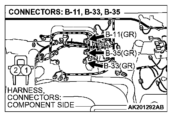 STEP 13. Check harness connector B-11, B-33, B-35 at left bank injector for damage.