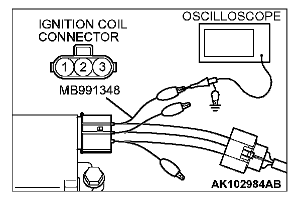 2. Connect the oscilloscope probe to ignition coil connector terminal No. 3.