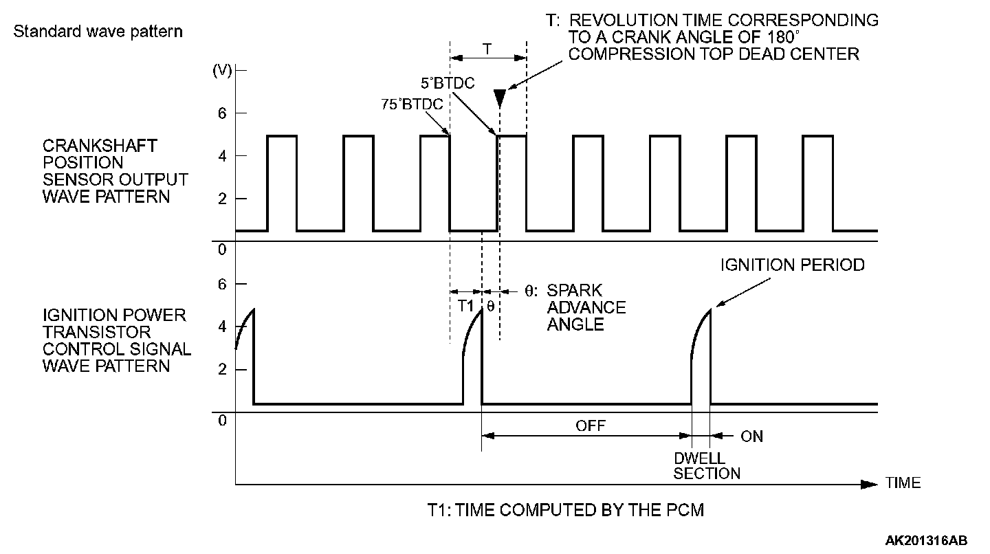 Point: Condition of wave pattern build-up section and maximum voltage (Refer to abnormal wave pattern examples 1 and 2.