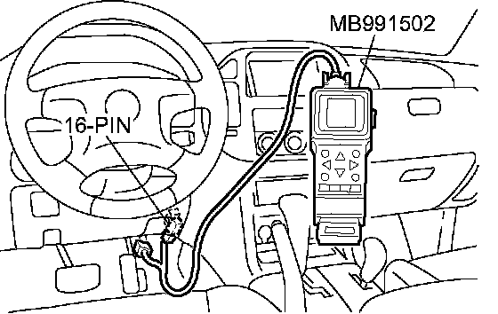 CAUTION: To prevent damage to scan tool MB991502, always turn the ignition switch to "LOCK" (OFF) position before connecting or disconnecting scan tool MB991502.