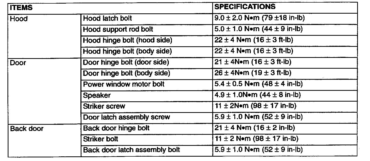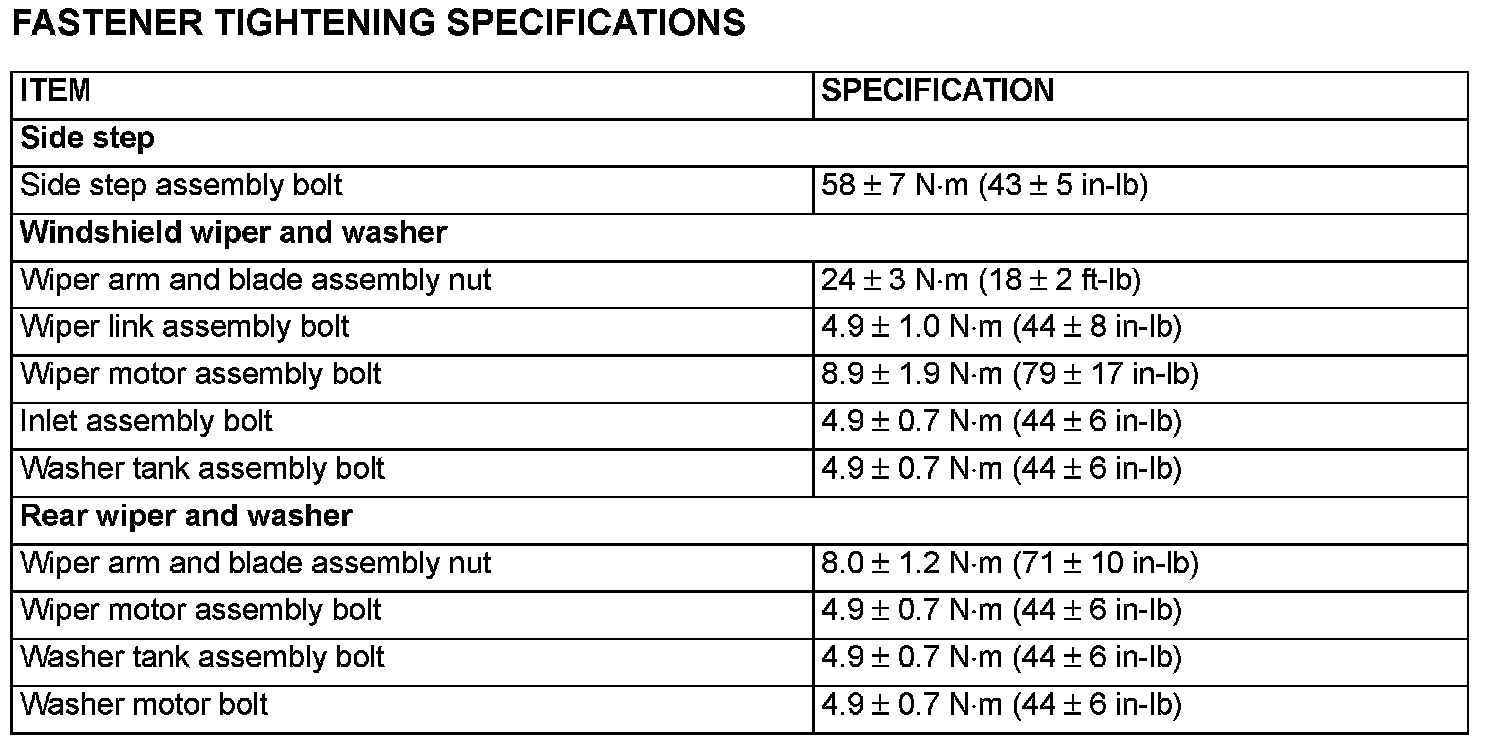 Fastener Tightening Specifications: