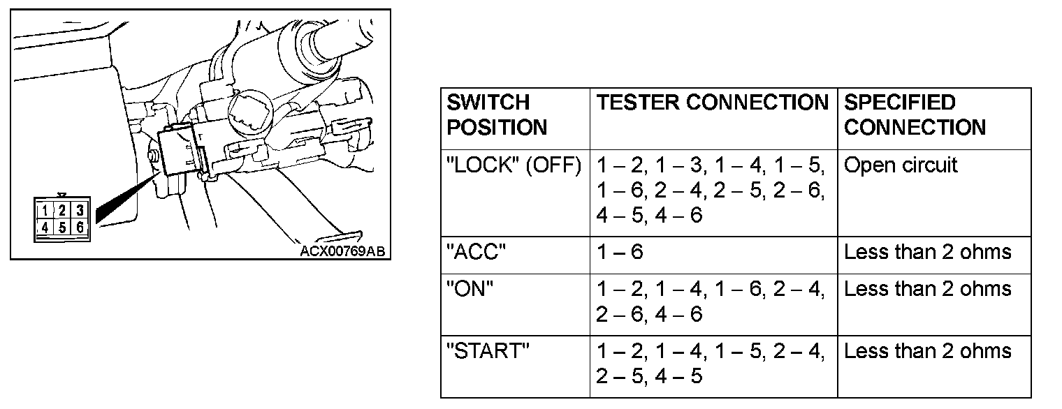 connector without removing the ignition switch and steering lock cylinder. Then check the continuity.