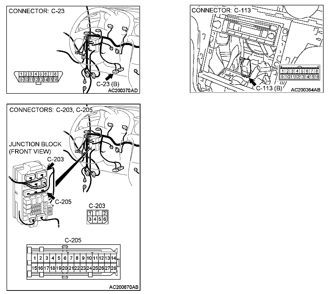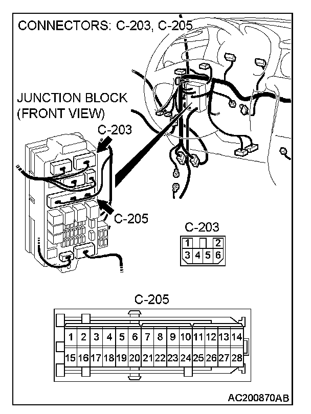 STEP 3. Check junction block connector C-203 and C-205.