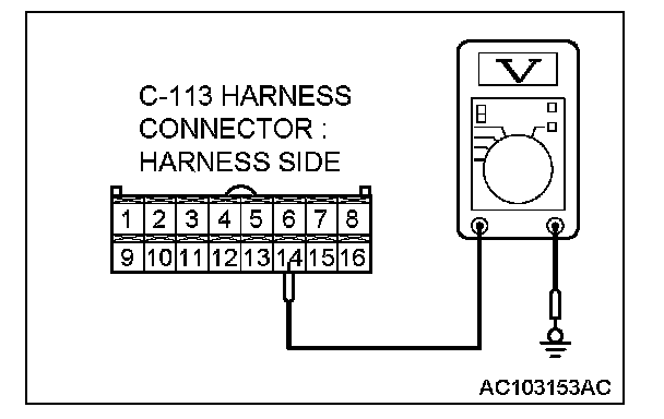 STEP 5. Measure the ground circuit voltage at auto-cruise control-ECU connector C-113 (terminal 14) by backprobing.