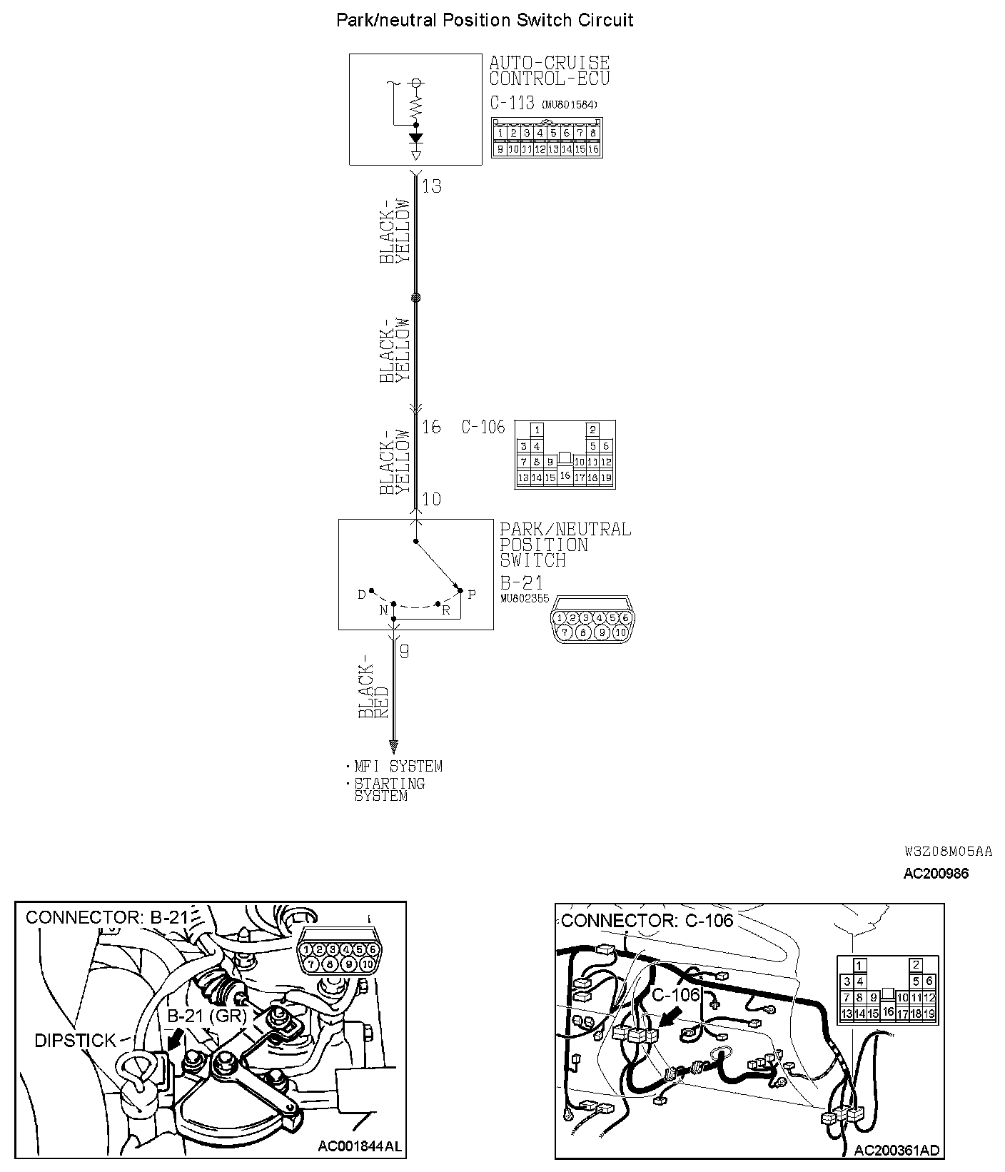 When the Selector Lever is Moved to "N" Range, Auto-cruise Control is not Cancelled.Park/neutral Position Switch Circuit Part 1:
