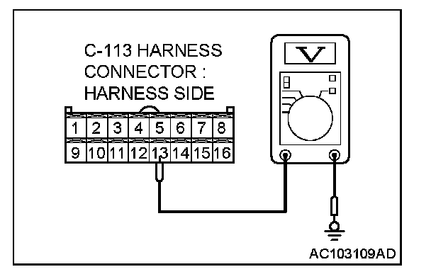 STEP 4. Measure the output circuit voltage at auto-cruise control-ECU connector C-113 (terminal 13) by backprobing.