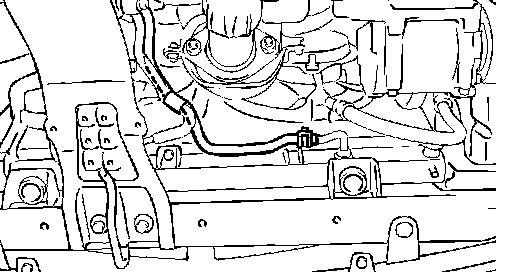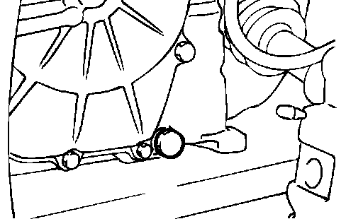1. Disconnect the hose shown in the illustration which connects the transaxle and the oil cooler (inside the radiator). Place a container under the hose to collect the A/T fluid.