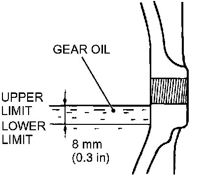 GEAR OIL LEVEL CHECKCheck that gear oil level is not 8 mm (0.3 inch) below the bottom of filler plug hole.
