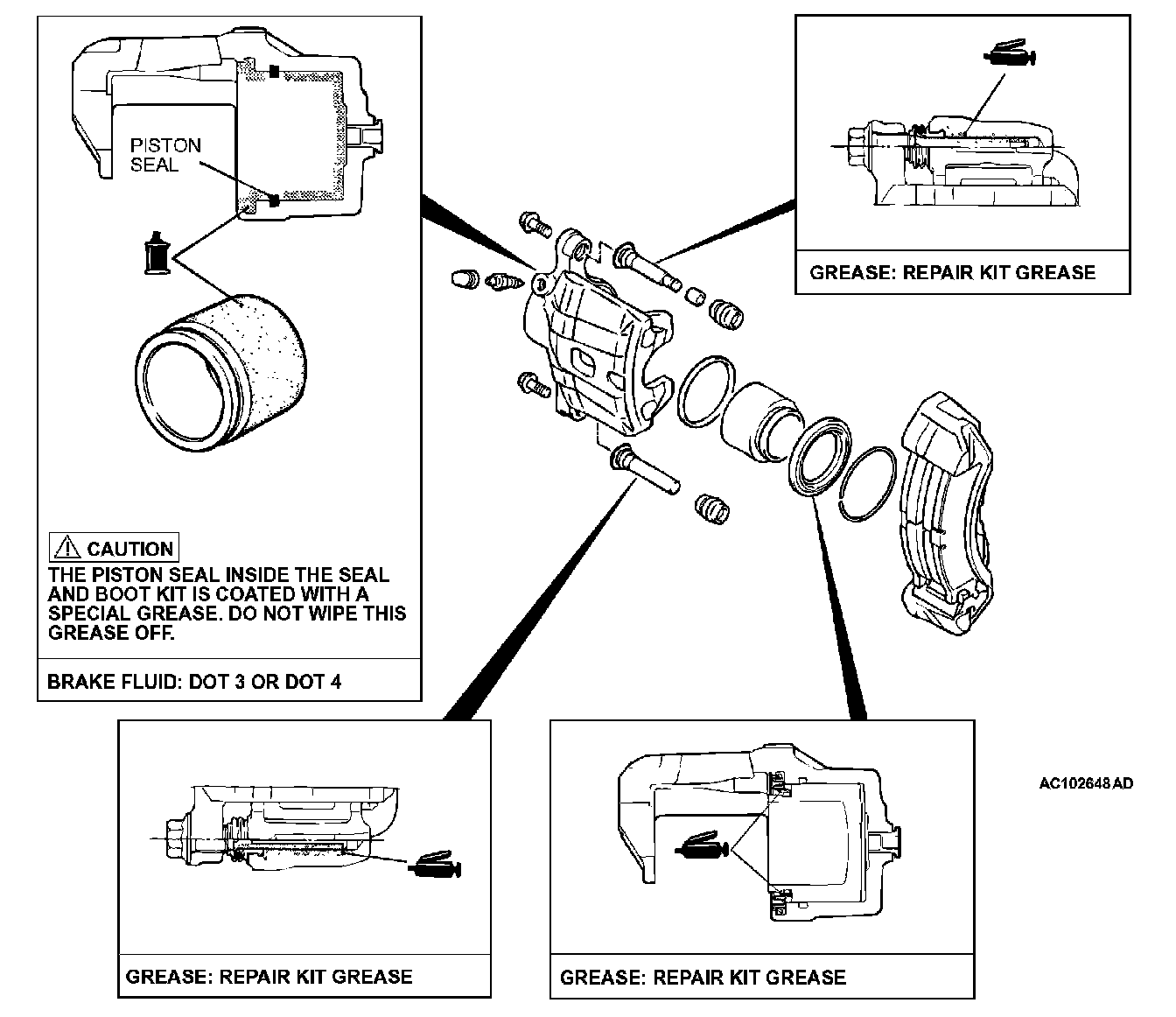 ^ Check the pad for damage or adhesion of grease, check the backing metal for damage.