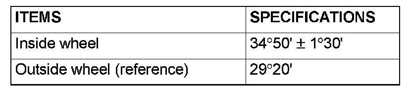 STEERING ANGLE CHECK1. Place the front wheel on a turning radius gauge and measure the steering angle.