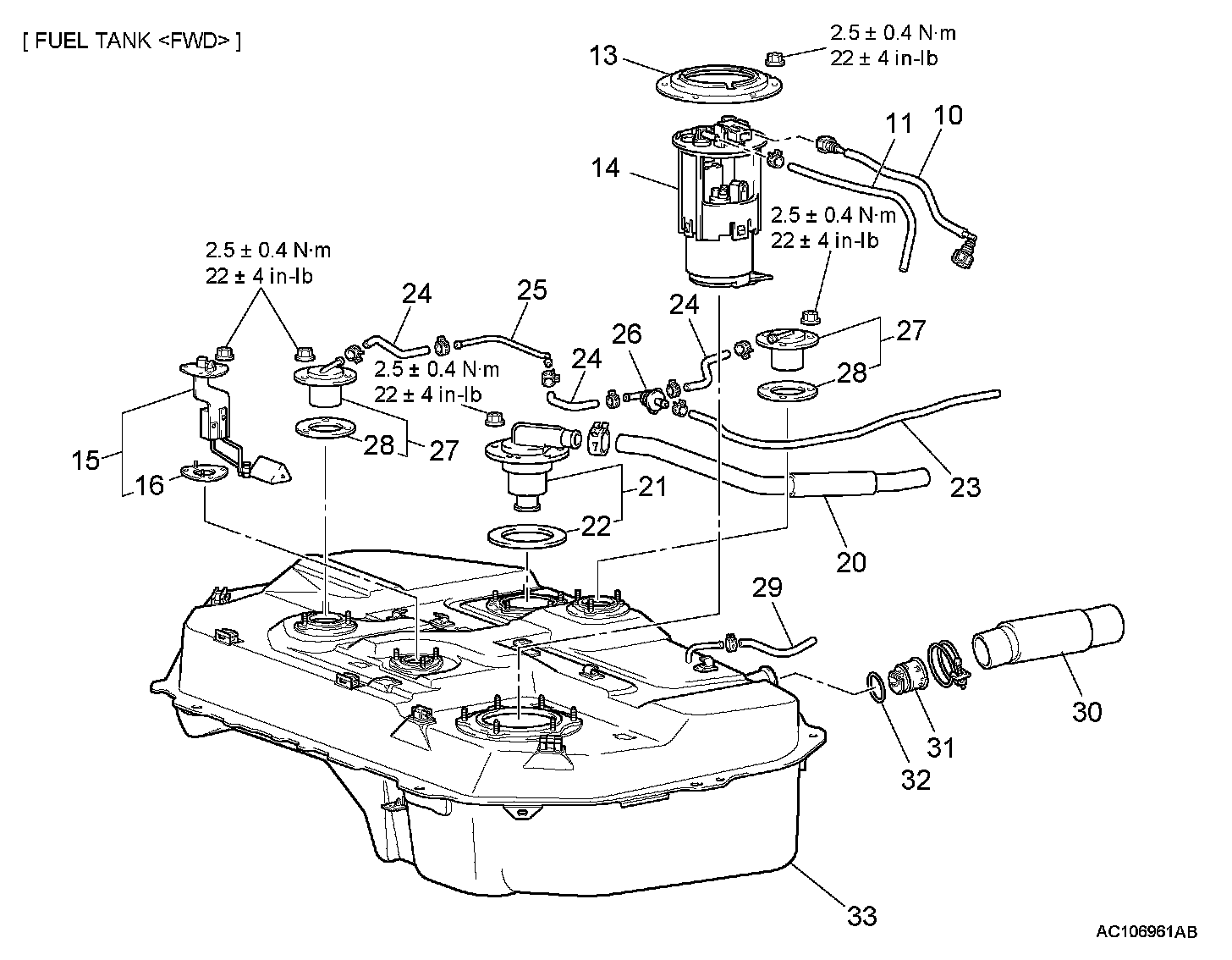 <> FUEL TANK INSTALLATION NUTS AND BOLTS/HARNESS CONNECTOR CONNECTION REMOVAL