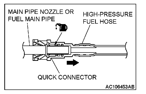 Apply clean engine oil to the tips of the main pipe nozzle and the fuel main pipe, and connect quick-joint connector of the high-pressure fuel hose to them.