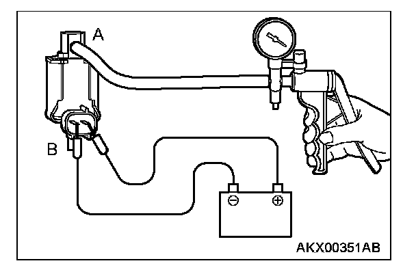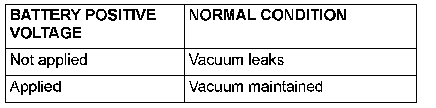 4. As described in the chart, check airtightness by applying a vacuum with voltage applied directly from the battery to the EGR solenoid and without applying voltage.