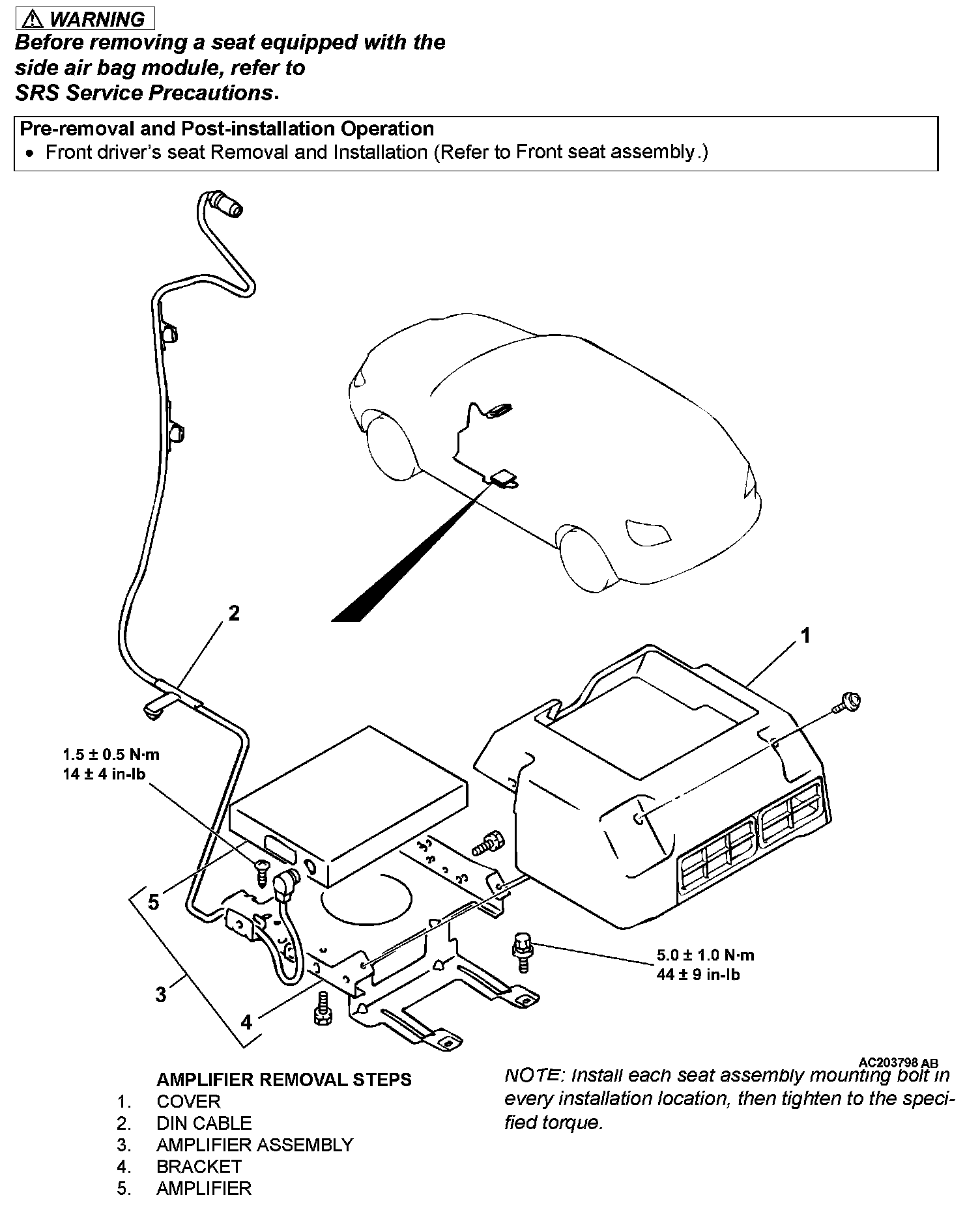 5.0 ± 1.0 Nm (44 ± 9 in-lb)