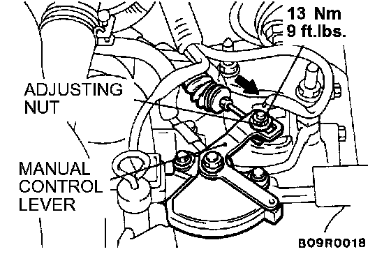 2. Loosen the control cable to manual control lever coupling nut to free the cable and lever.