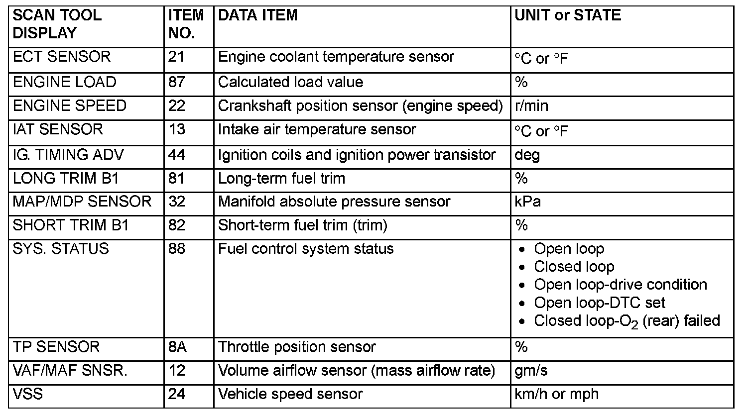 NOTE: As for diagnostic trouble code P1603, "freeze frame" data is not memorized.