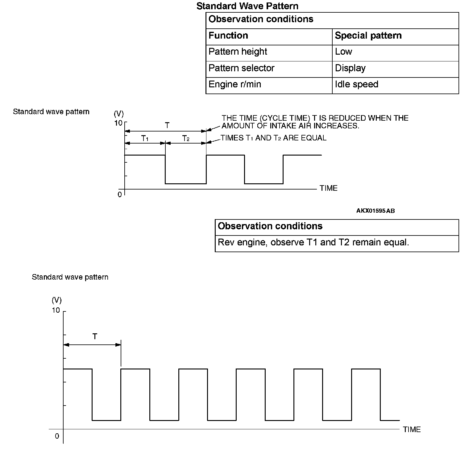 1. Check that cycle time T becomes shorter and the frequency increases when the engine speed is increased.