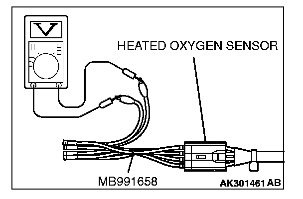 1. Disconnect the heated oxygen sensor connector and connect special tool MB991316 to the connector on the heated oxygen sensor side.