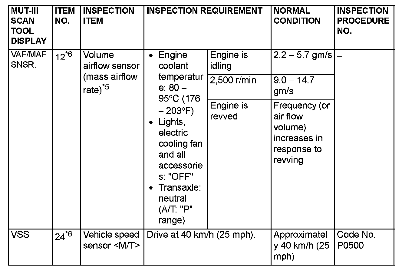 NOTE:*5: In a new vehicle [driven approximately 500 km (311 mile) or less], the volume airflow sensor output frequency is sometimes 10% higher than the standard frequency.