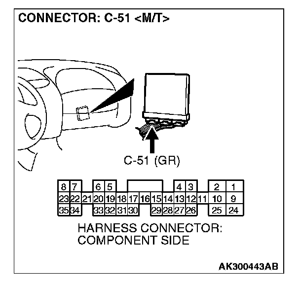 STEP 5. Check for open circuit and short circuit to ground and harness damage between generator connector B-45 terminal No. 1 and ECM connector C-51 terminal No. 8