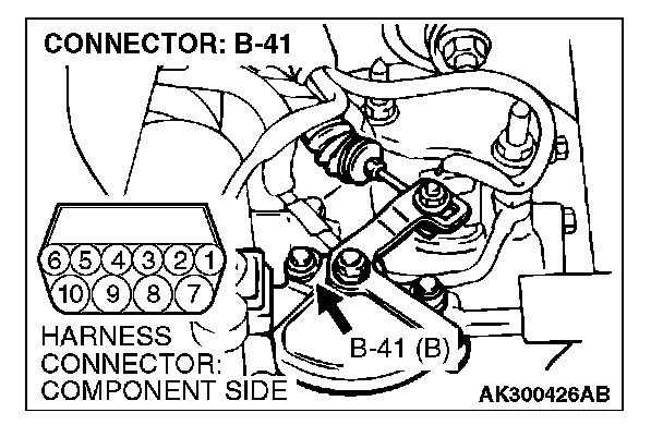 1. Disconnect the connector B-41 and measure at the harness side.