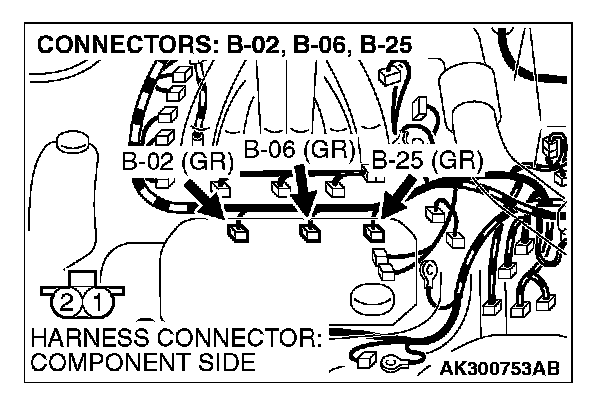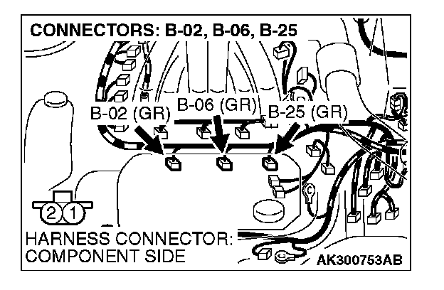 STEP 13. Check connector B-02, B-06, B-25 at left bank injector for damage.