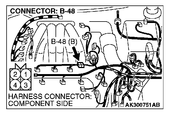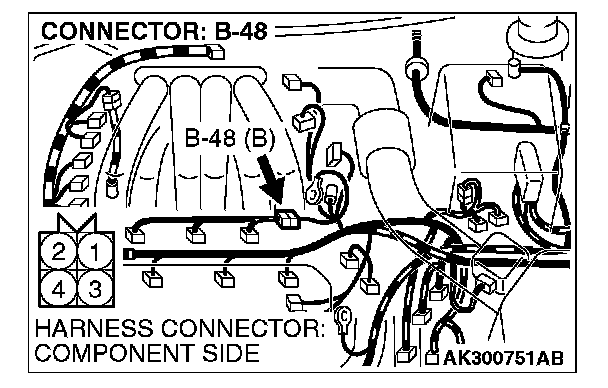 STEP 12. Check connector B-48 at injector intermediate connector for damage.