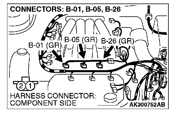 STEP 11. Check connector B-01 or B-05 or B-26 at right bank injector for damage.