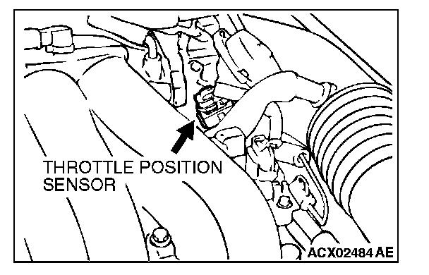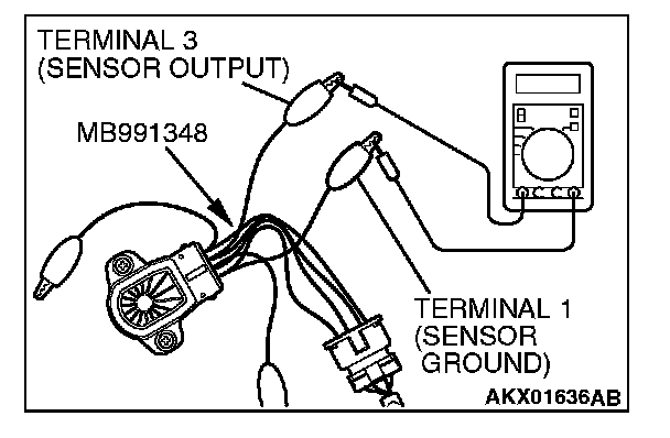 6. Disconnect scan tool MB991958, and connect the throttle position sensor connector. When the scan tool is not used, remove special tool MB991348, and connect the throttle position sensor connector.