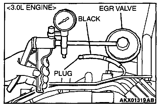 EGR SYSTEM CHECK1. Disconnect the vacuum hose (black) from the EGR valve, and then connect a hand vacuum pump via the Tee-fitting.