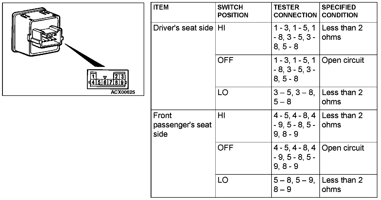 CONTINUITY TEST OF HEATED SEAT SWITCH
