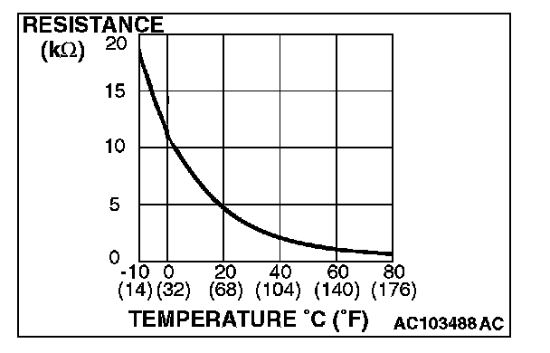 When the resistance between the sensor terminals is measured under two or more temperature conditions, the resistance should approximately satisfy the illustrated values.