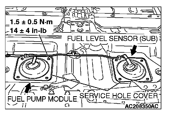 2. Remove service holes and remove the fuel pump module and fuel level sensor (sub).