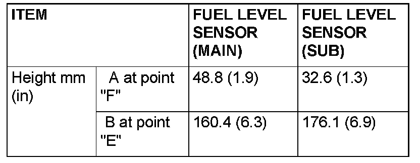 3. If all checks are correct, go to fuel unit height check. If any check is not correct, replace the fuel pump module or fuel level sensor (sub).