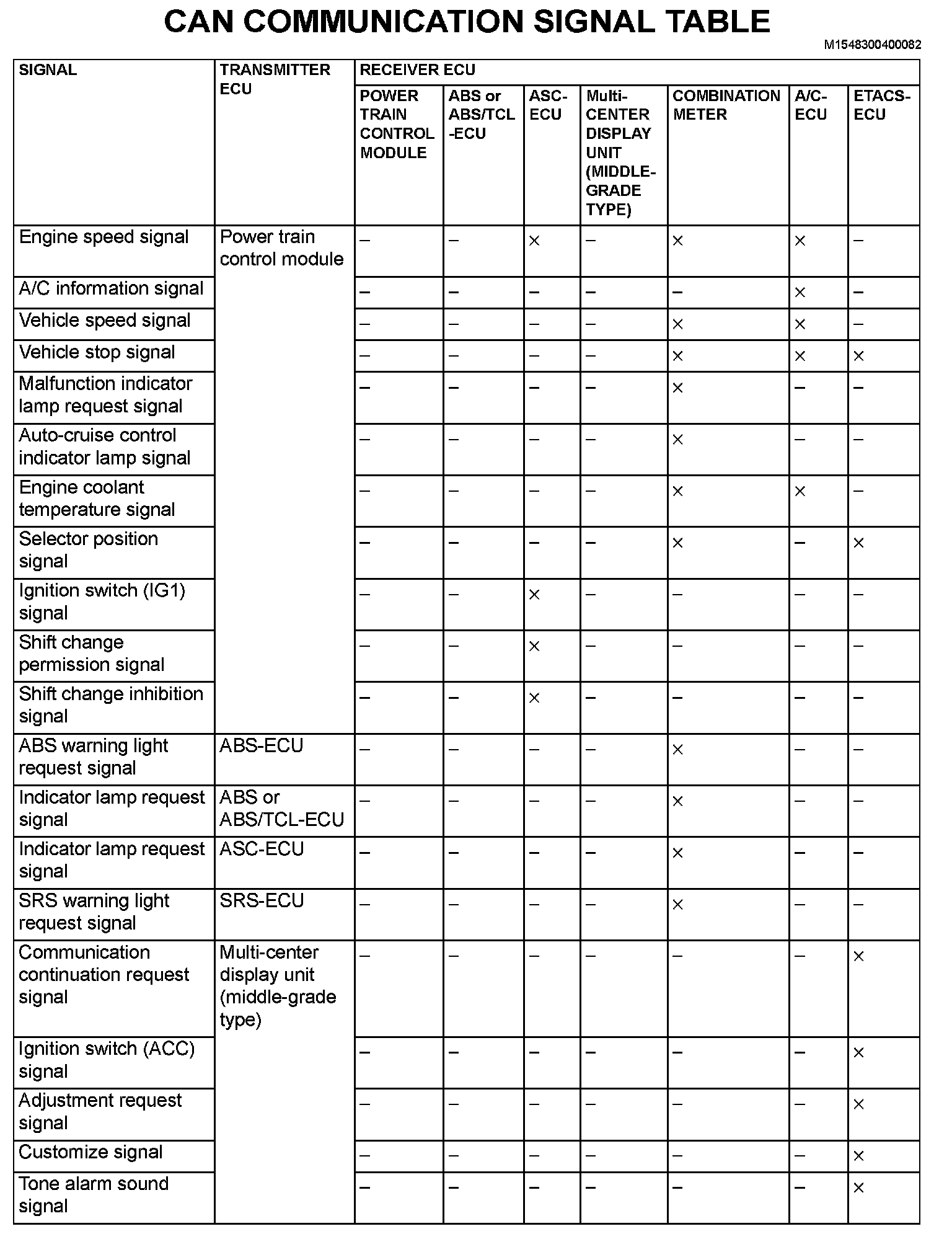 CAN Communication Signal Table