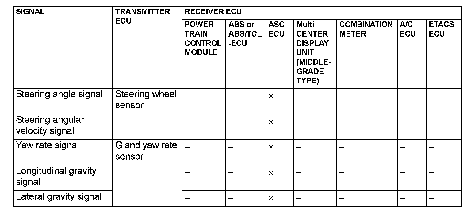 CAN Communication Signal Table Part 1: