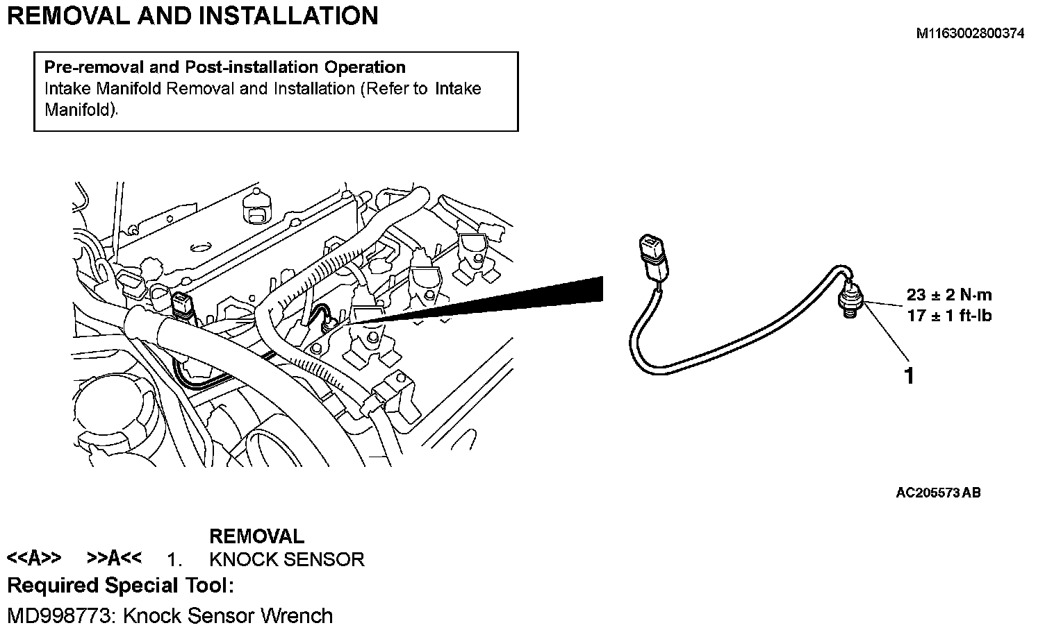 KNOCK SENSORREMOVAL AND INSTALLATION