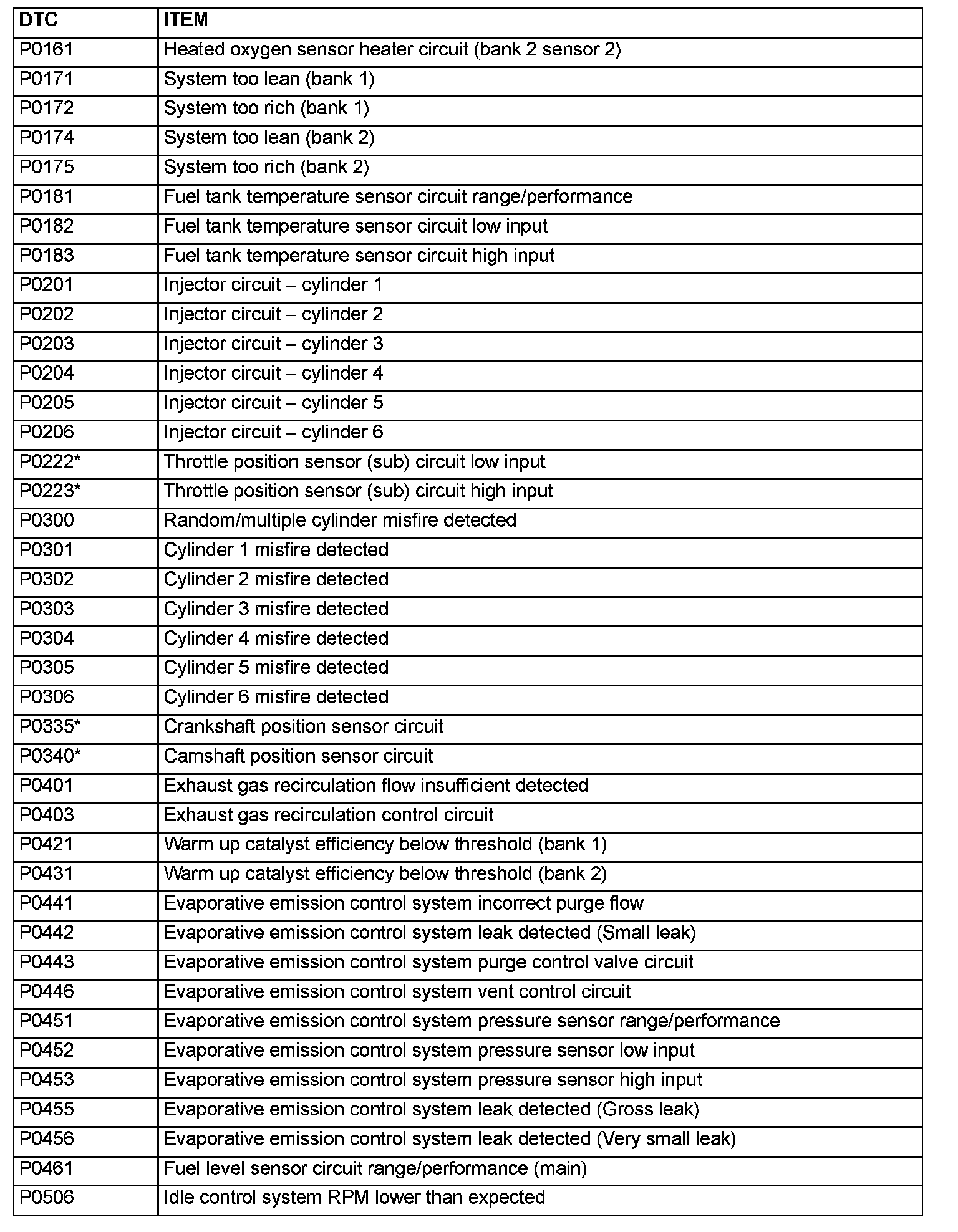 P0161 - P0506:
