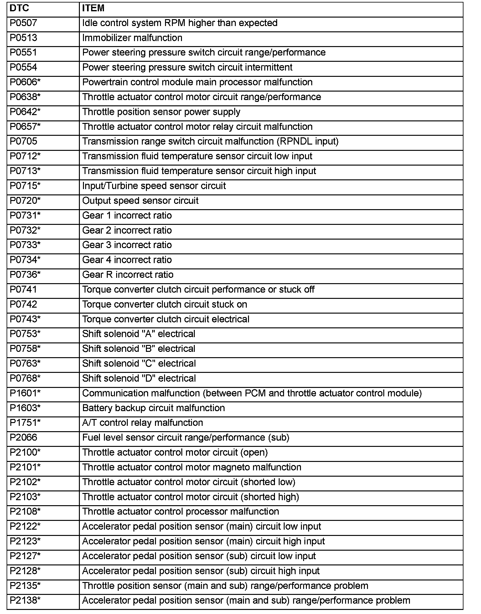 P0507 - P2138: