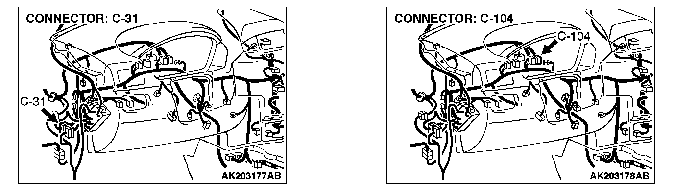 NOTE: Check harness after checking intermediate connectors C-31 and C-104. If intermediate connector C-31 and C-104 are damaged, repair or replace them. Refer to Harness Connector Inspection. Then check that the malfunction is eliminated.