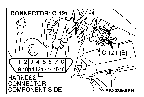 STEP 2. Check for open circuit, short circuit to ground and harness damage between data link connector C-121 (terminal No. 7) and PCM connector B-18 (terminal No. 15).