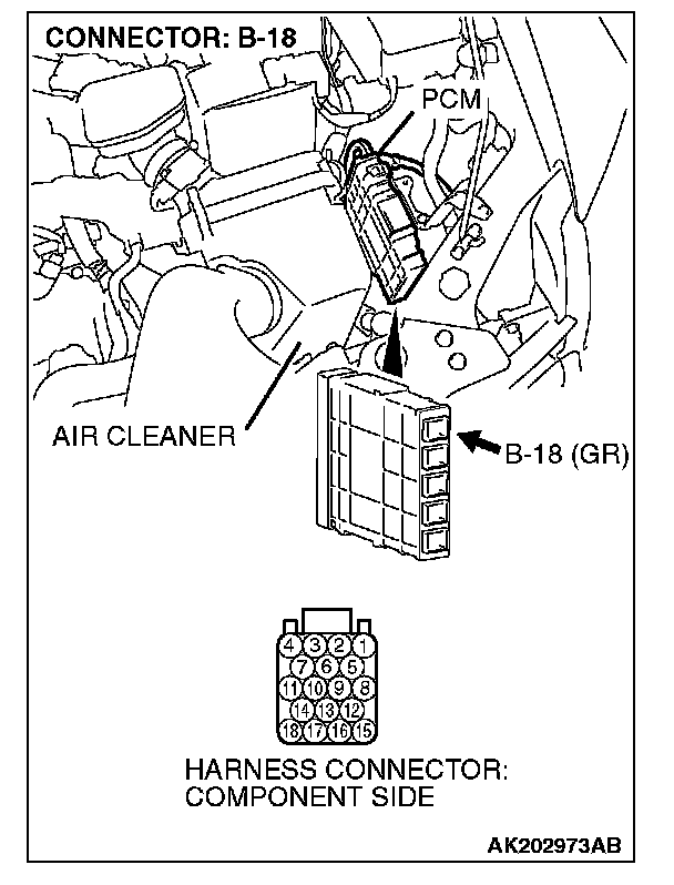 STEP 1. Check harness connector B-18 at PCM for damage.