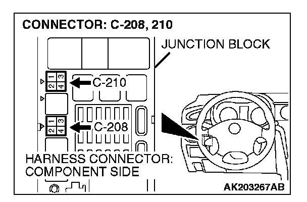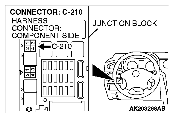 1. Disconnect the connector C-210 and measure at the harness side.