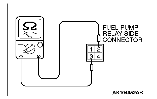 2. Check for continuity between the each fuel pump relay terminals No. 2 and No. 3.