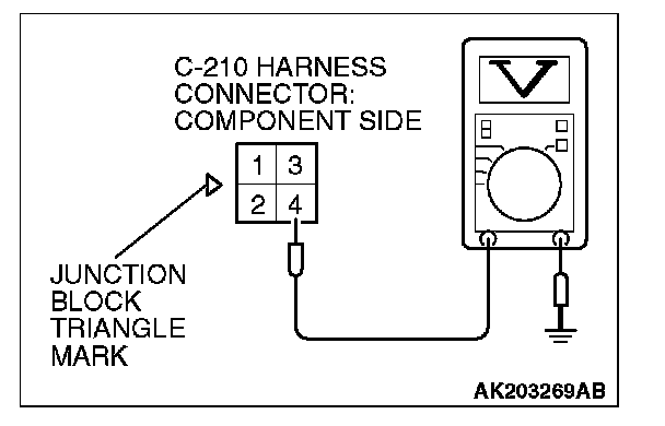STEP 4. Measure the power supply voltage at fuel pump relay 1 harness side connector C-210.