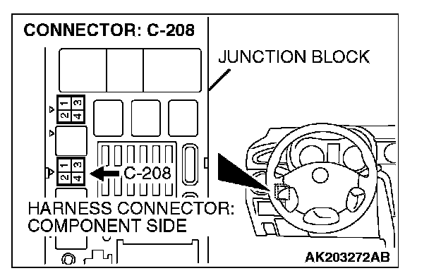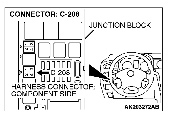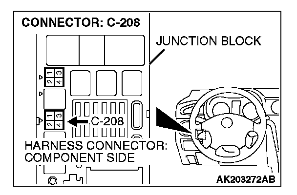1. Disconnect the connector C-208 and measure at the harness side.