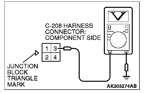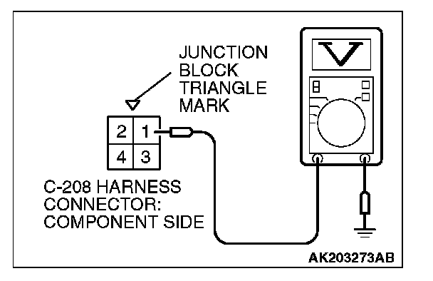 STEP 7. Measure the power supply voltage at fuel pump relay 2 harness side connector C-208.