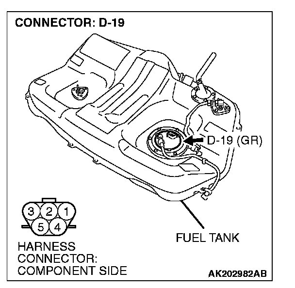 STEP 9. Check harness connector D-19 at fuel pump for damage.