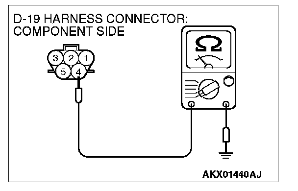 1. Disconnect the connector D-19 and measure at the harness side.